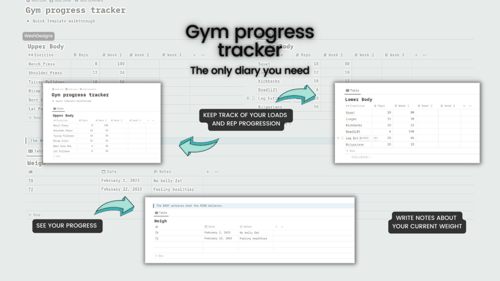 This is a simple template to keep track of your progress at the gym, yet, it is all you need.
